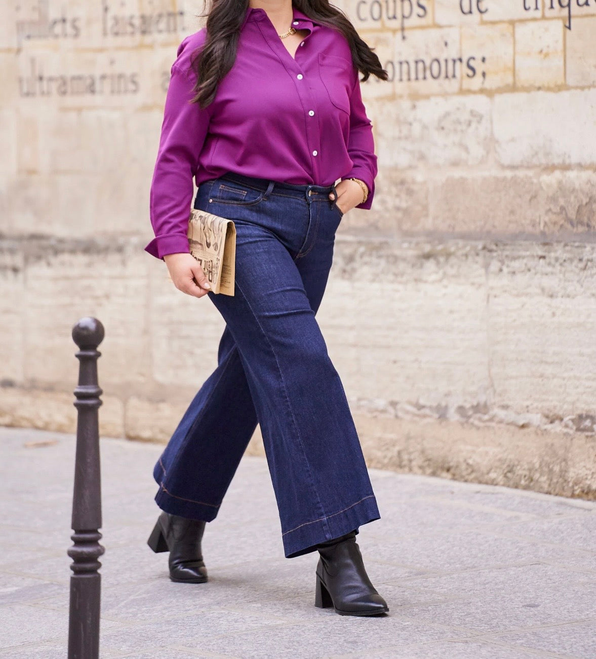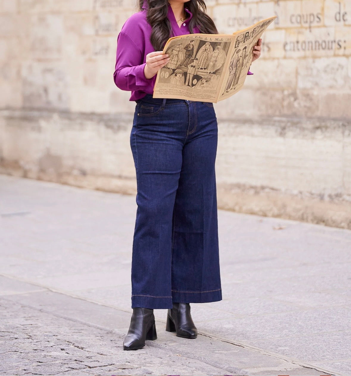 Découvrez le confort et l’élégance du jean Julia, un jean wide leg à la taille cintrée qui s’évaser gracieusement à partir des hanches jusqu’aux chevilles. Cette coupe flatteuse crée l’illusion de jambes plus longues et élance la silhouette.